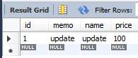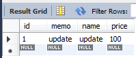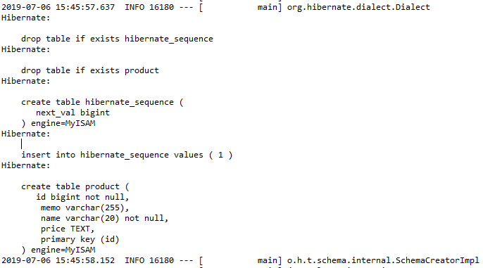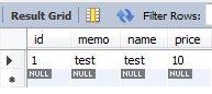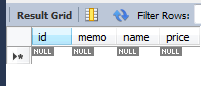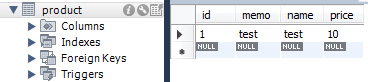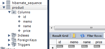 product 테이블 및 객체에 선언했던 id,memo,name,price 칼럼 생성