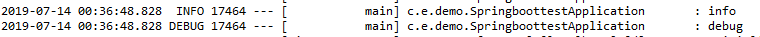 # 특정 클래스만 설정 logging.level.com.example.demo.SpringboottestApplication=debug .. ..