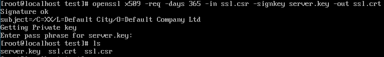 | > openssl x509 -req -days 365 -in ssl.csr -signkey server.key -out ssl.crt |