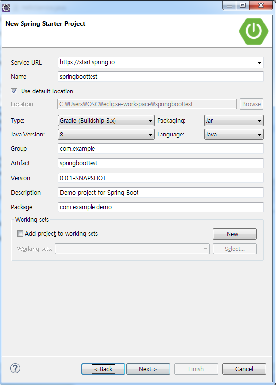 모든 java파일은 ProjectAppication.java과 같거나 하위폴더에 생성