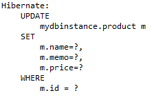 | package com.example.demo; import org.springframework.data.jpa.repository.JpaRepository; import org.springframework.data.jpa.repository.Modifying; import org.springframework.data.jpa.repository.Query; import org.springframework.data.repository.query.Param; import org.springframework.transaction.annotation.Transactional; public interface ProductRepository extends JpaRepository<Product, Long>{ @Modifying @Transactional @Query(value="UPDATE mydbinstance.product m SET m.name=:#{#product.name}, m.memo=:#{#product.memo}, m.price=:#{#product.price} WHERE m.id = :id", nativeQuery=true) void update(@Param("product") Product product, @Param("id") Long id); } |